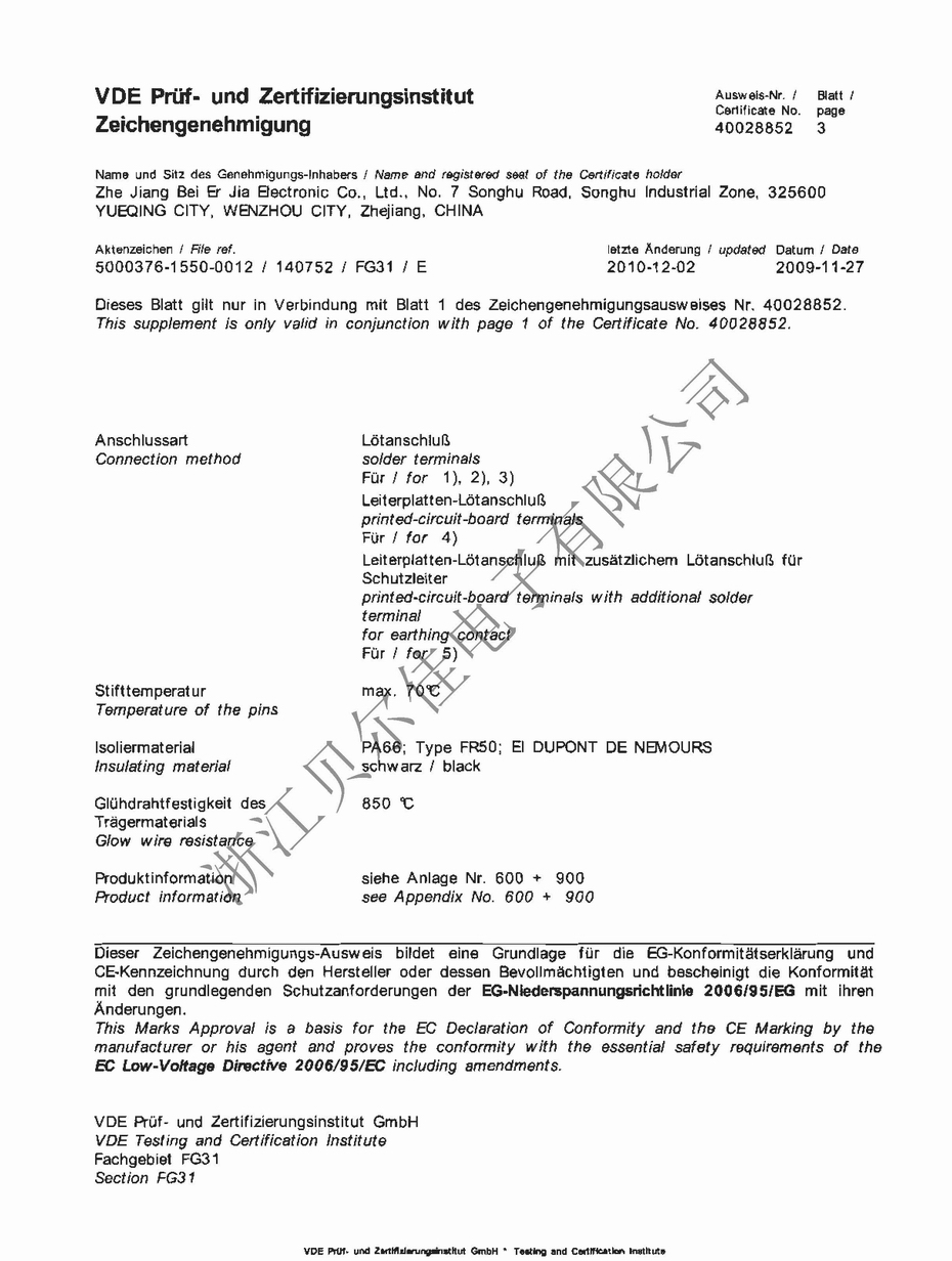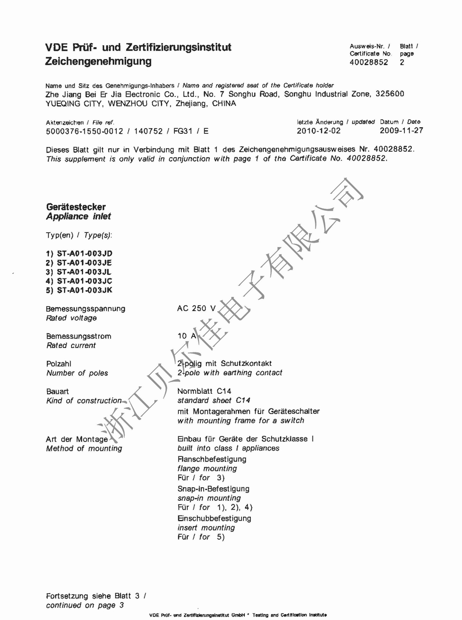 ST-A01-003JD&003JE&003JL&003JC&003JK系列 VDE證書