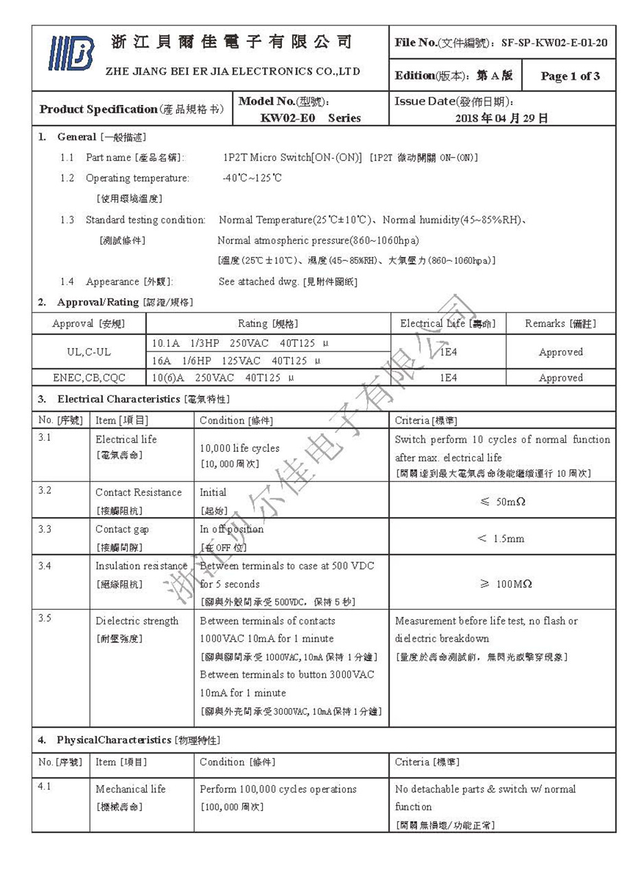 - 規(guī)格書