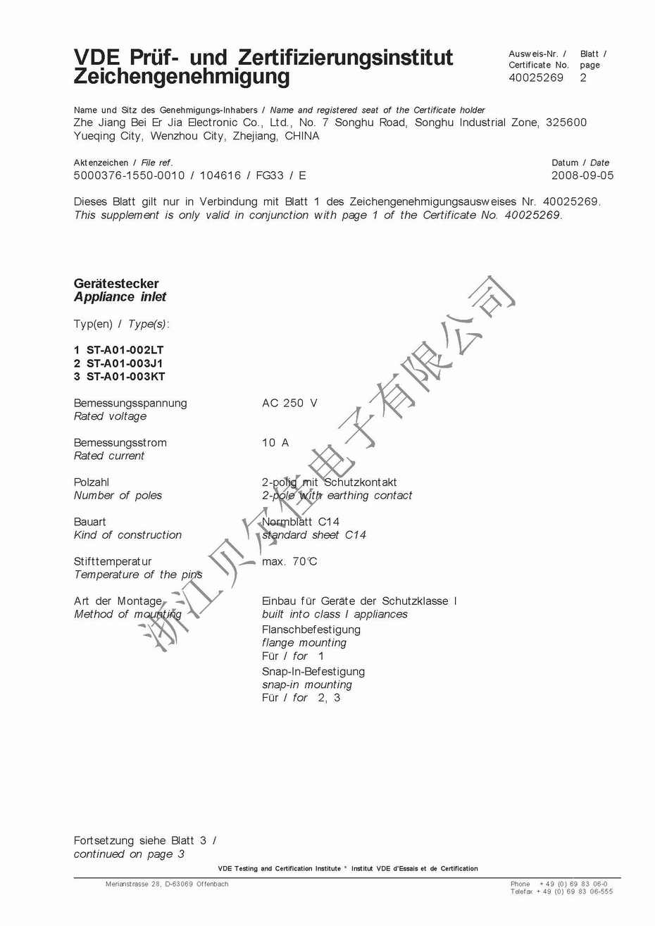 ST-A01-002L&003J1&003KT系列 VDE證書