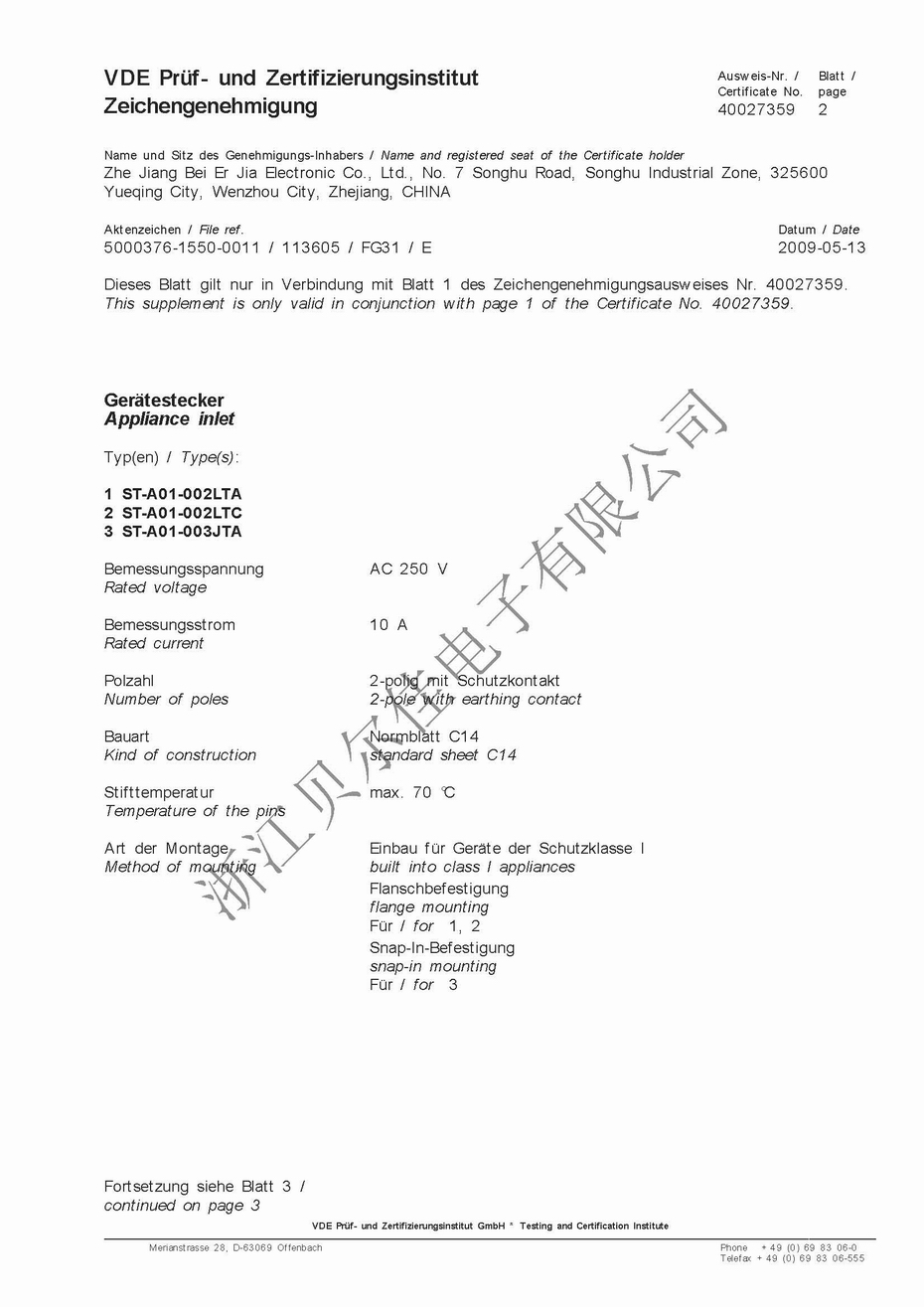 ST-A01-002LTA&002LTC&003JTA系列 VDE證書