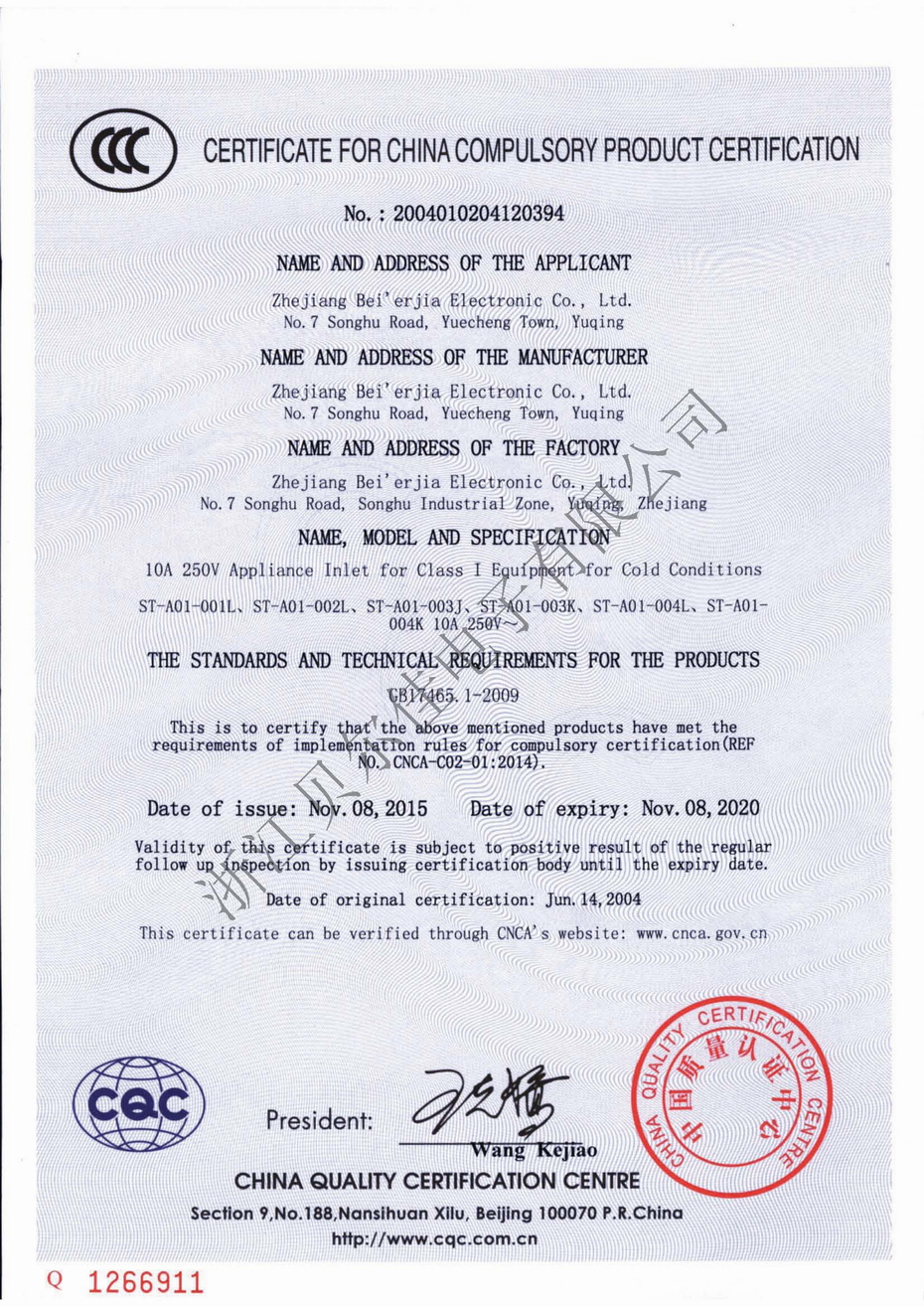 ST-A01-001L&002L&003J&003K&004L&004K CCC證書
