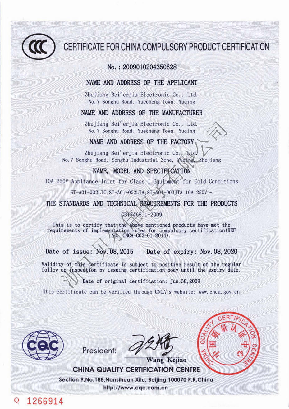 ST-A01-002LTC&002LTA&003JTA CCC證書